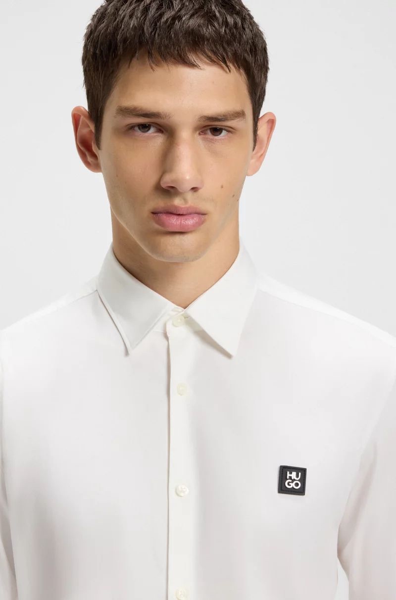 חולצה מכופתרת בצבע לבן עם לוגו פלטה