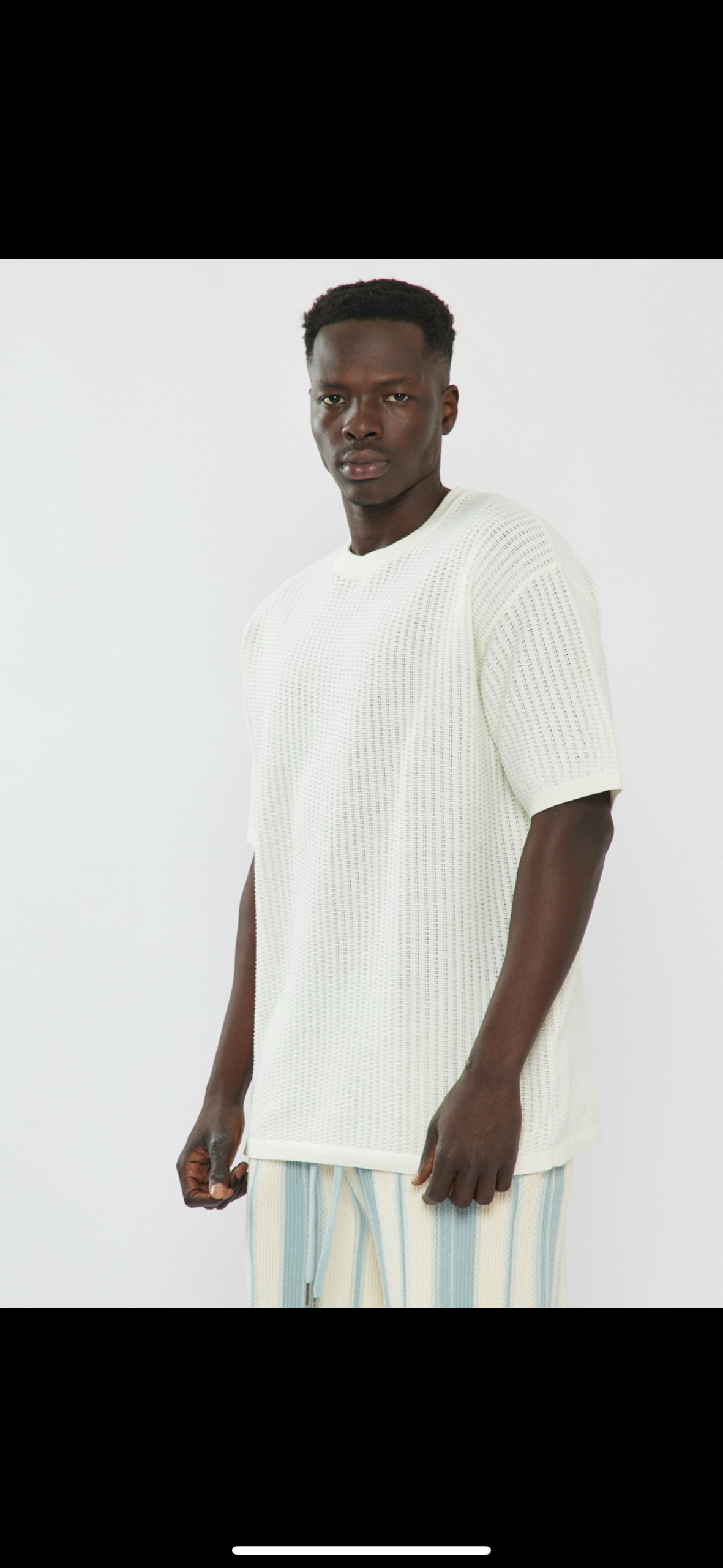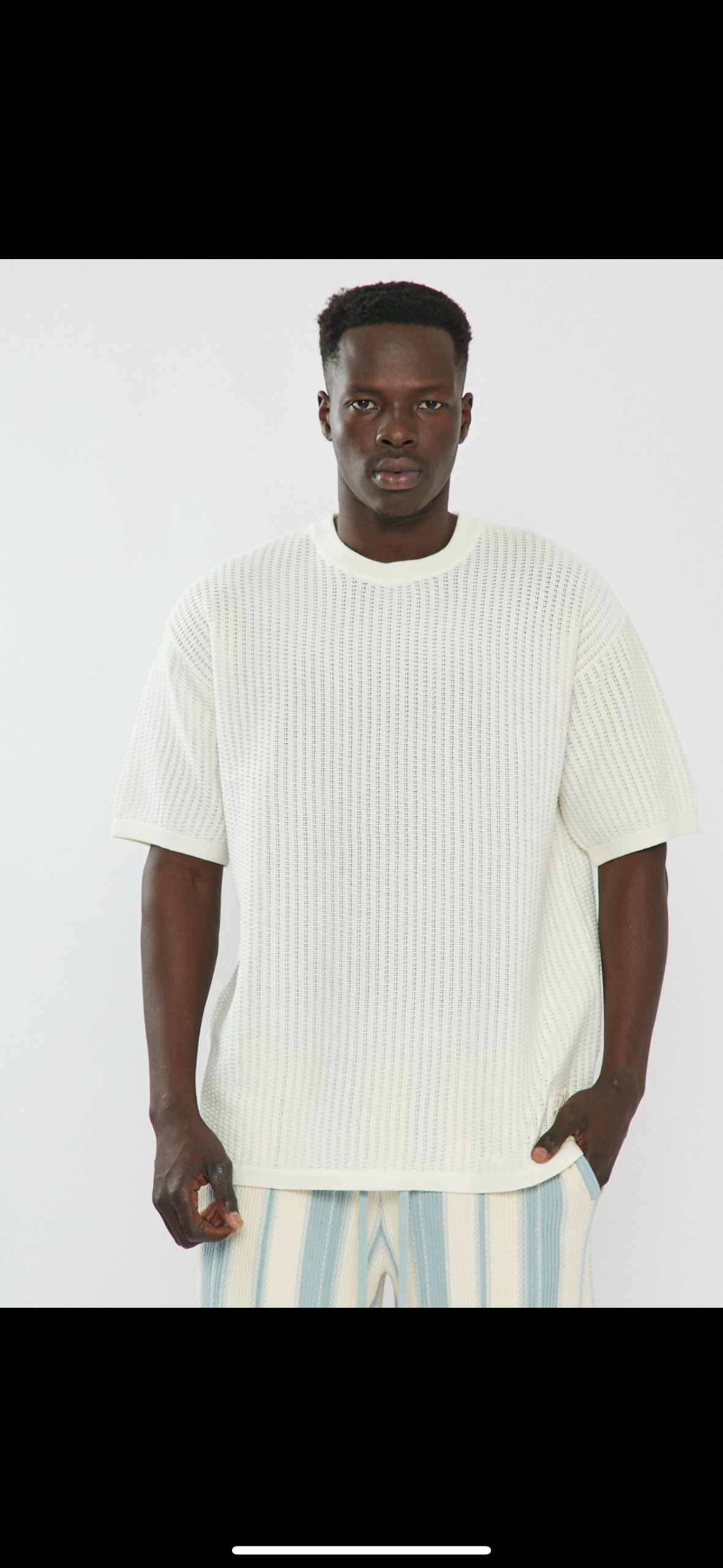 חליפה 2 חלקים בצבע שמנת עם סריגה וופל